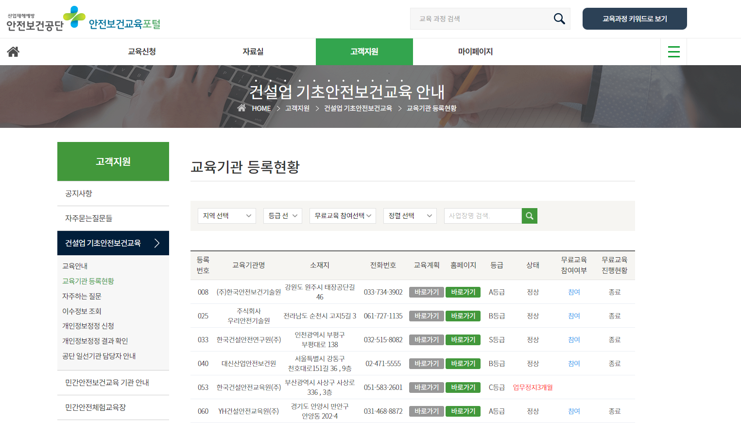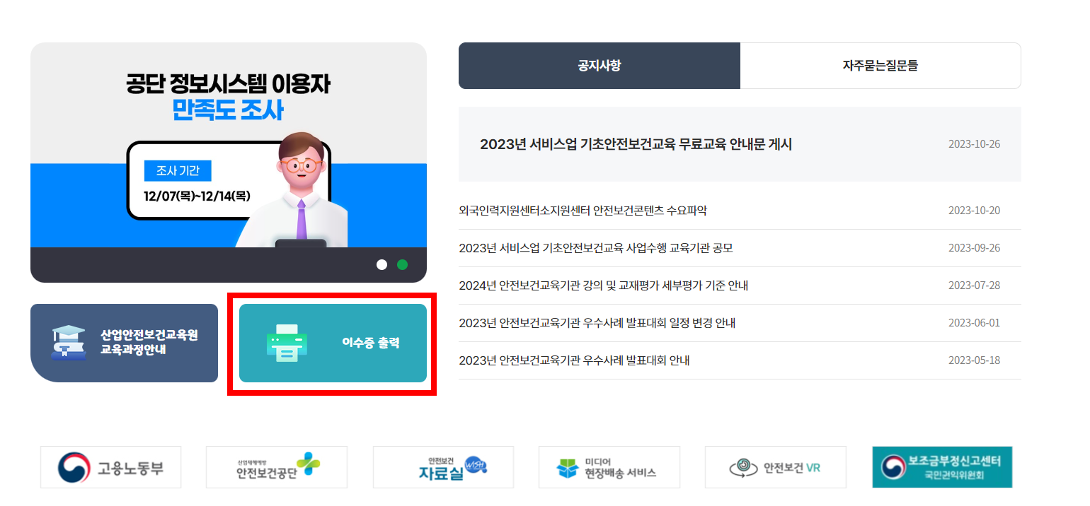 건설기초안전교육 이수기관 조회 방법