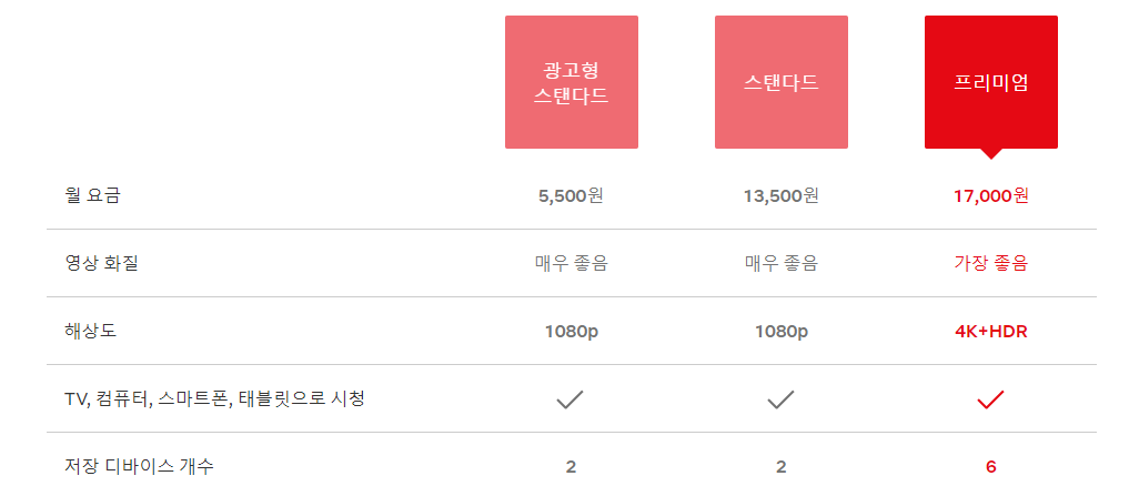 프리미엄 요금제의 경우 기존에는 17,000원에 4인 공유를 하면 월 4,250원의 비용을 내면 됐는데 이제는 프리미엄 요금제를 선택해도 최대 3인 사용이 가능한데 1인당 5,000원을 더 지불해서 추가 회원 등록을 해야 합니다.