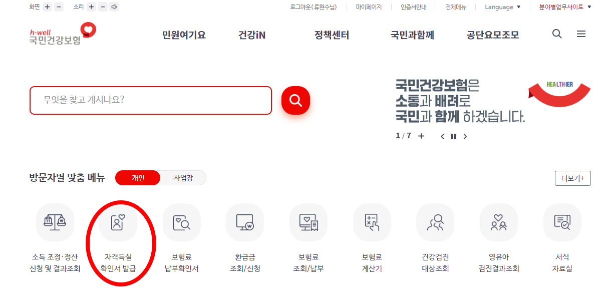건강보험공단 홈페이지에서 발급받는 방법