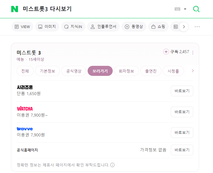 왓챠 미스트롯3 다시보기