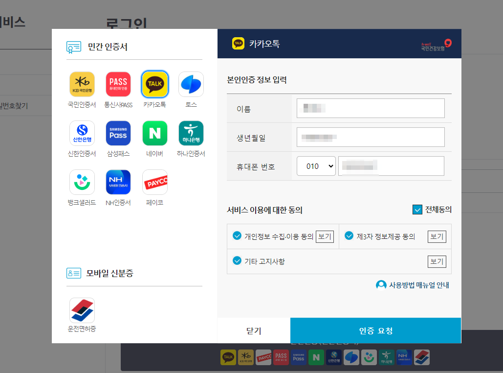 저는 간편 인증(민간인증서) 중 카카오톡 인증하기로 인증을 진행하였습니다.