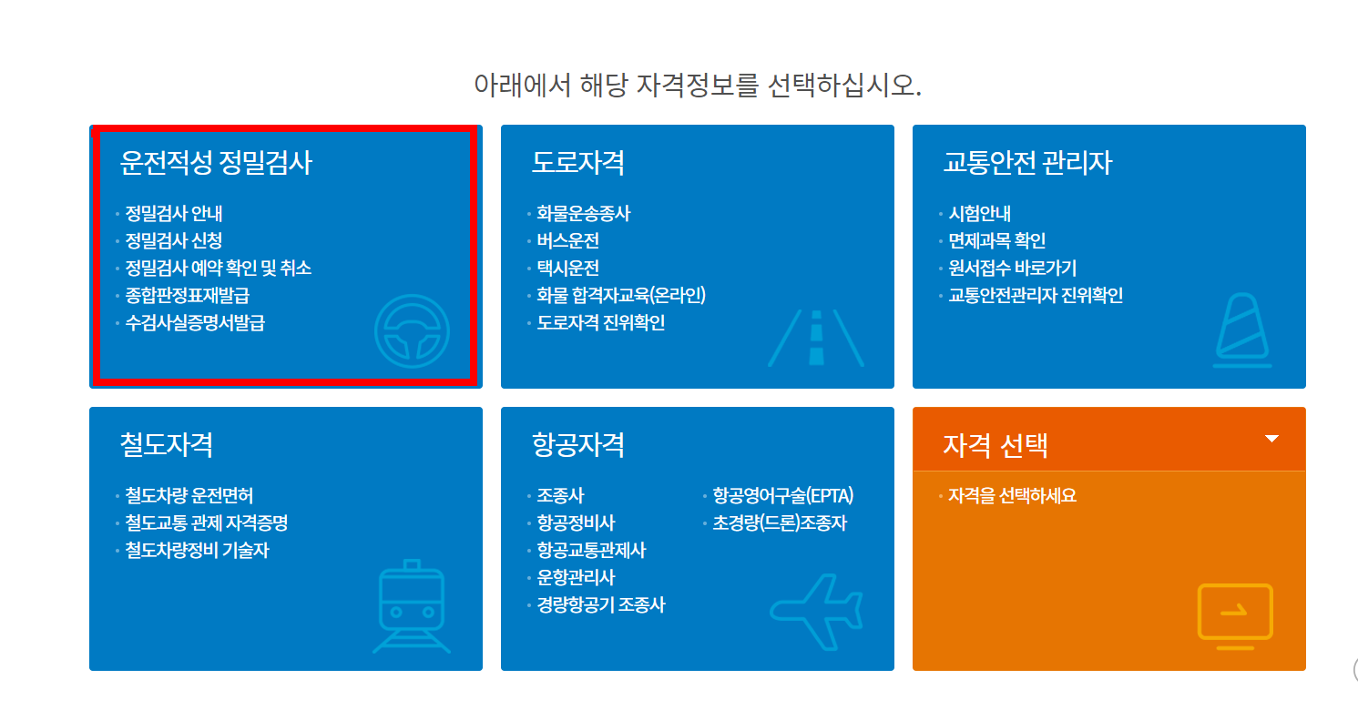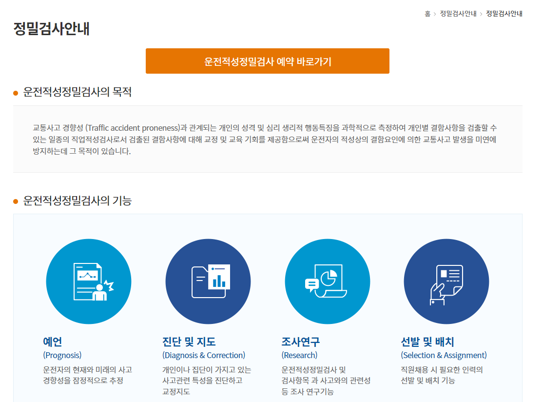운전적성 정밀검사는 TS국가자격시험 운전정밀검사 홈페이지에서 신청할 수 있습니다. 검사는 2~3시간 정도 소요되며 인지능력 등에 크게 문제가 없으면 무난히 적합판정을 받을 수 있습니다.