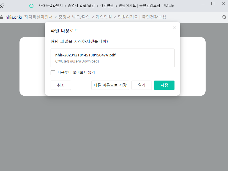 건강보험공단 홈페이지에서 발급받는 방법