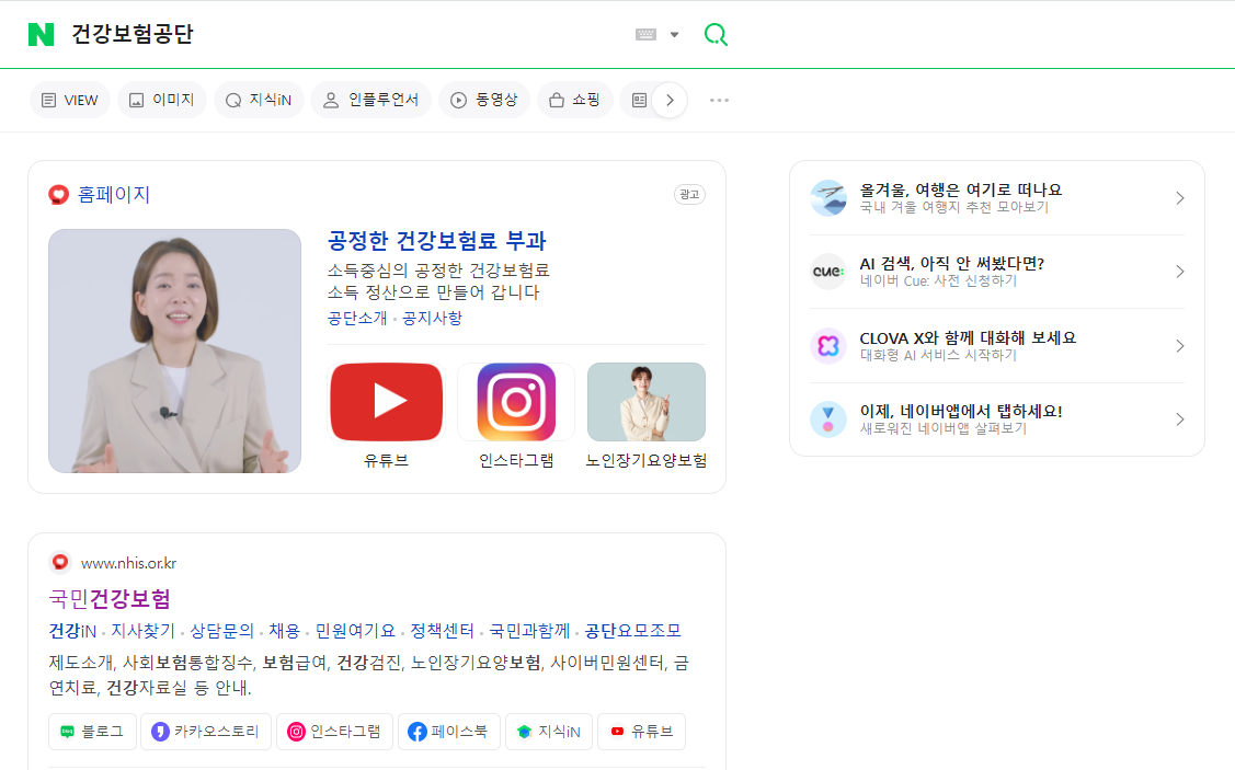 포털사이트에 건강보험공단을 검색합니다. 그 다음 국민건강보험 공단 홈페이지로 이동해 주세요.