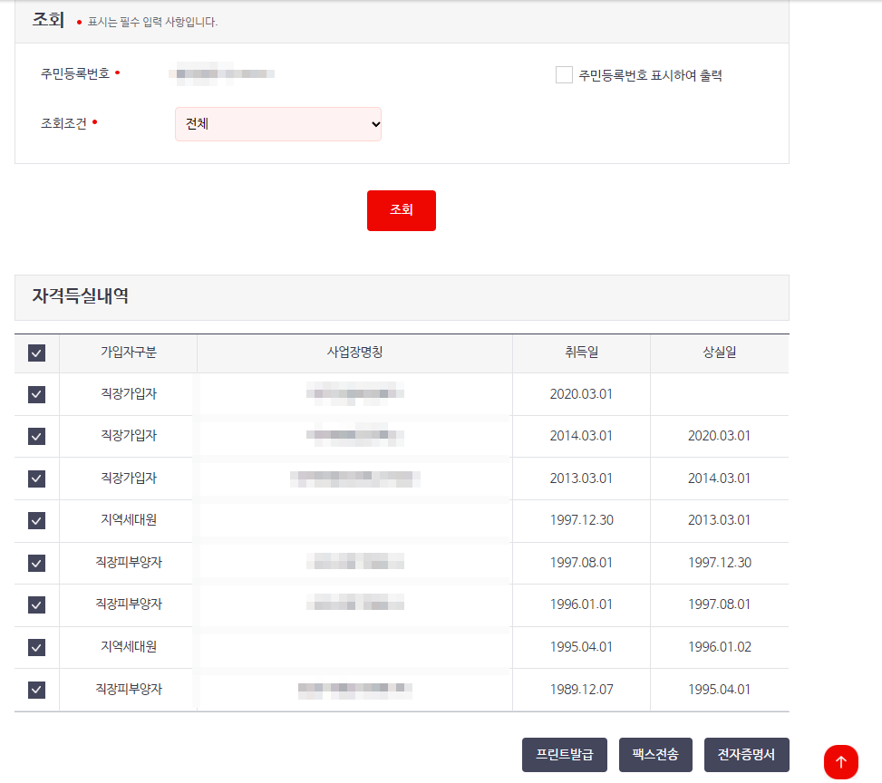 4대보험 자격득실 확인서 발급(건강보험자격득실 확인서)