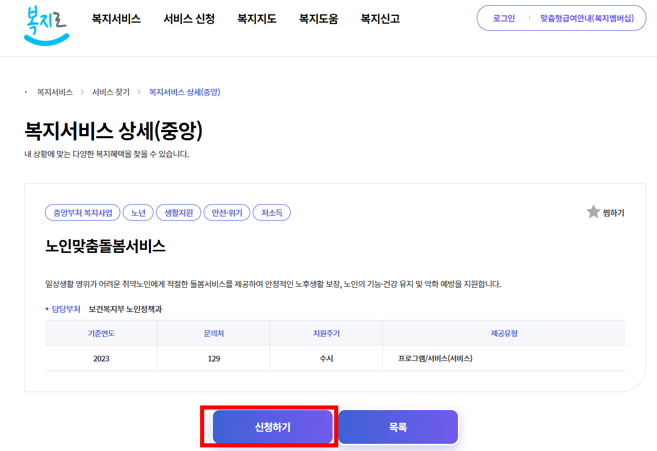 노인맞춤돌봄서비스 신청방법