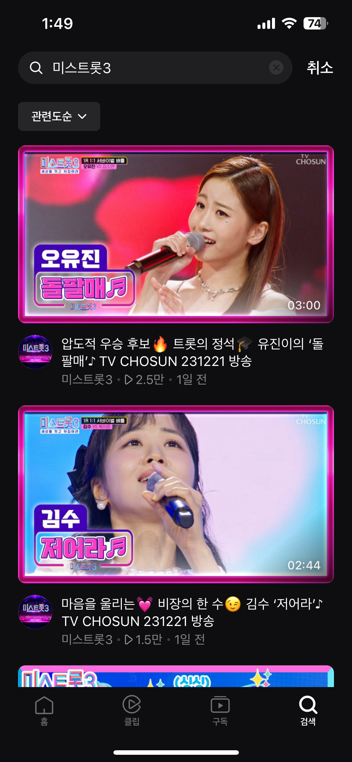 투표 참가를 위해서 네이버 나우 어플을 꼭 받아주세요. 그리고 네이버 나우 어플을 받은 뒤 검색창에 '미스트롯3'를 검색하면 참가자들이 방송에서 부른 경연곡 전체를 감상할 수 있습니다.