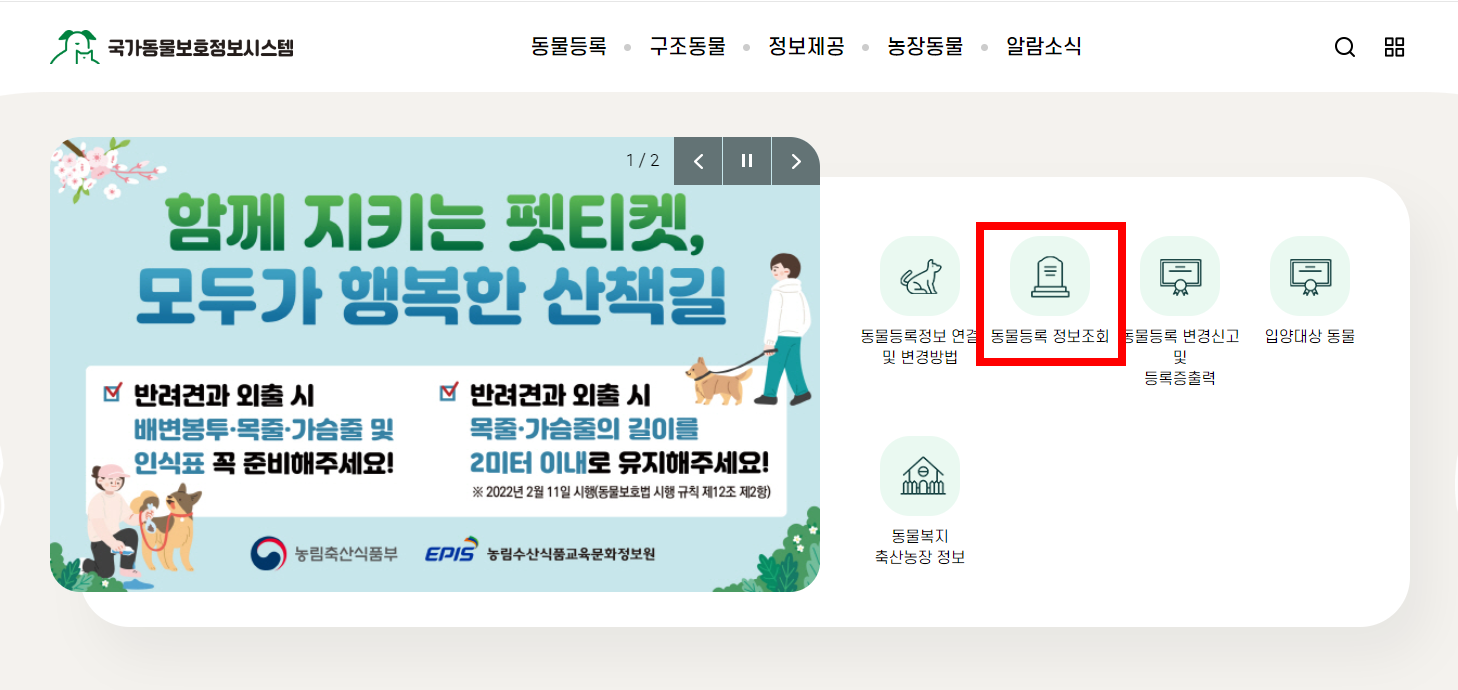 동물등록 번호 조회 방법
