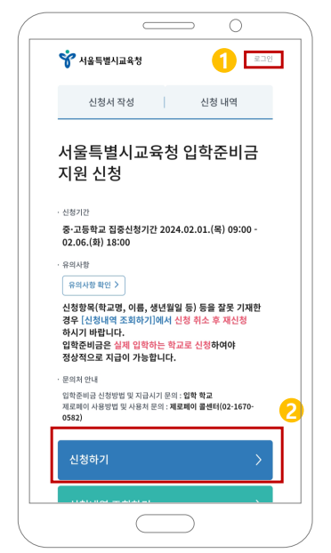 서울 입학지원금 신청방법 매뉴얼 다운받기 모바일