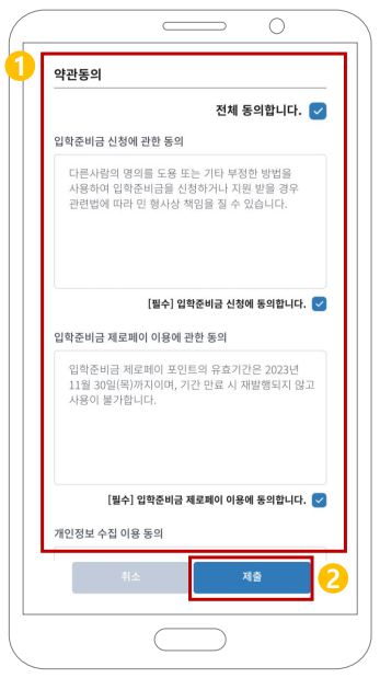 약관에 동의한 뒤 제출하기를 클릭해주세요.