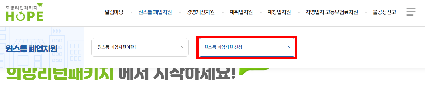 원스톱 폐업지원 > 원스톱 폐업지원 신청 클릭!
