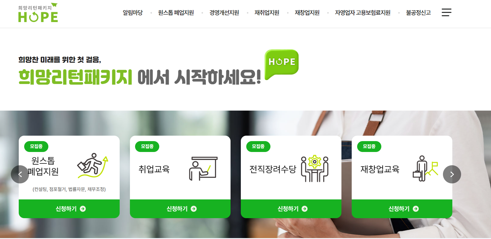희망리턴패키지 홈페이지를 통해 신청할 수 있습니다.