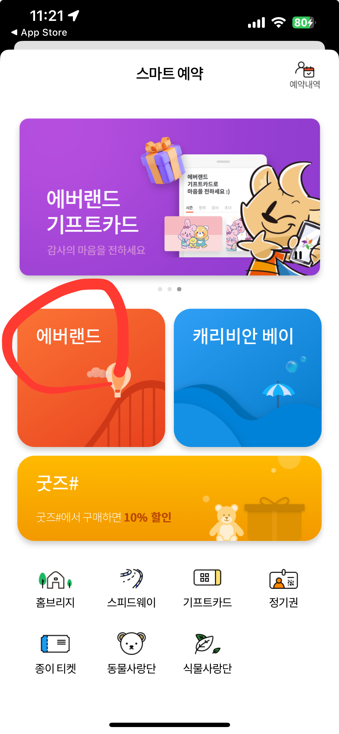 스마트예약에서는 에버랜드를 클릭해주세요.
