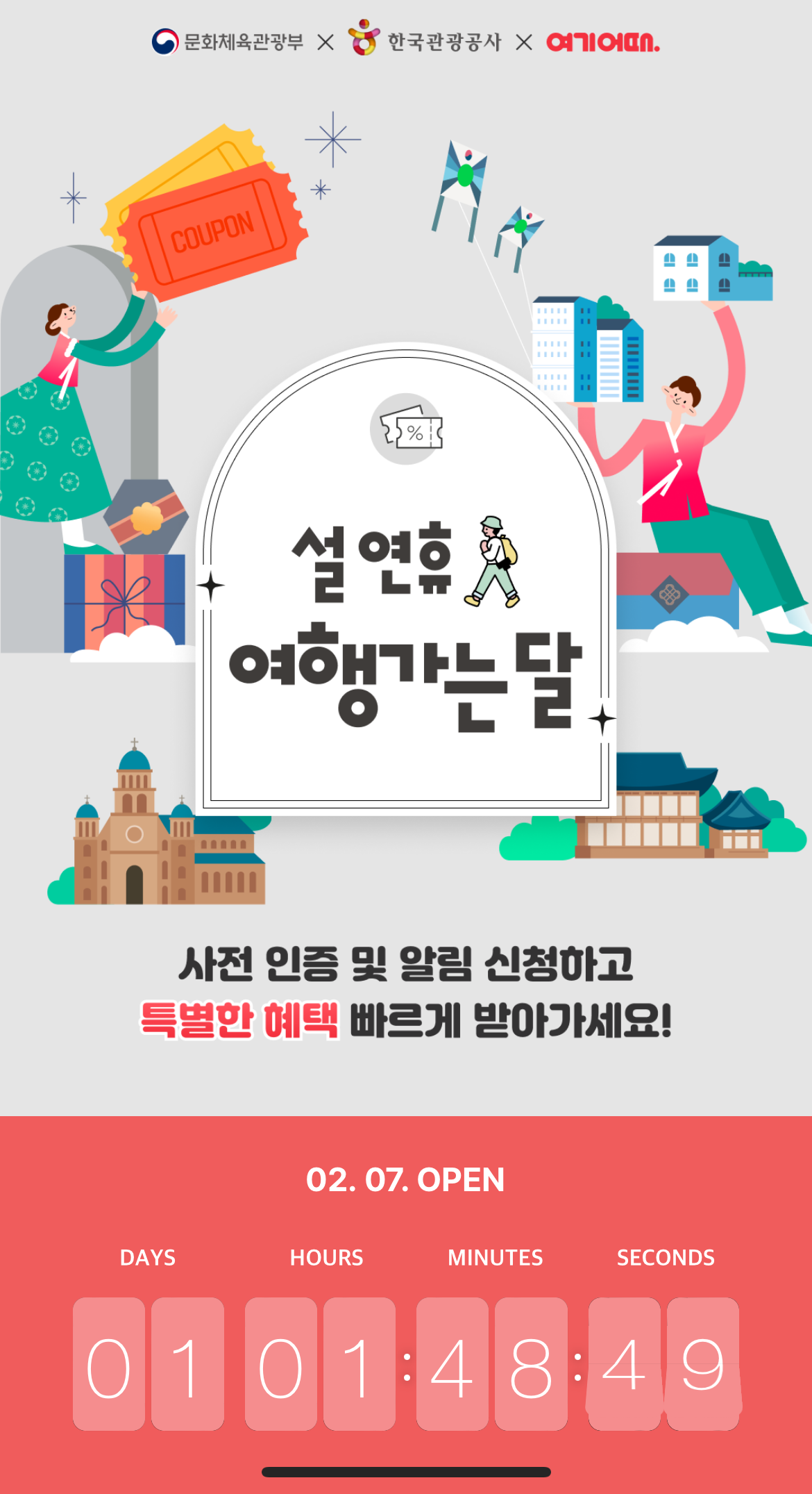 이번 프로모션은 국내 여행 활성화를 목적으로 2월을 '설연휴 여행가는 달'로 지정하고 진행하는 이벤트입니다.