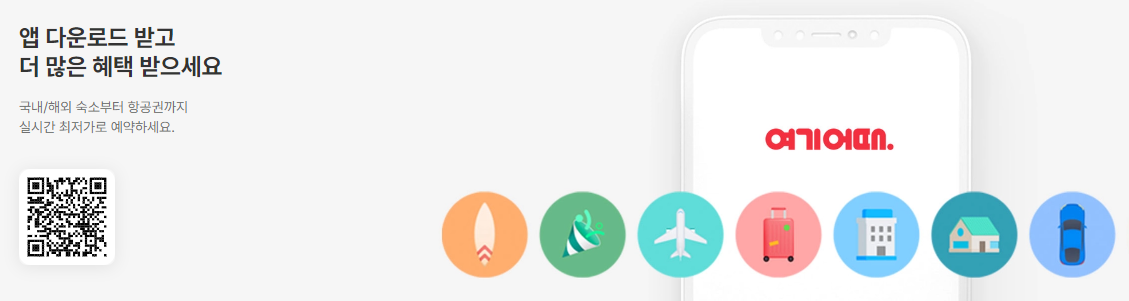 플레이스토어나 앱스토어에서 '여기어때'를 검색하시거나 아래 바로가기 버튼을 누르면 바로 다운받을 수 있습니다.