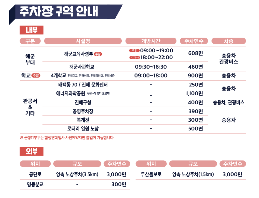 진해 군항제 벚꽃축제 주차장
