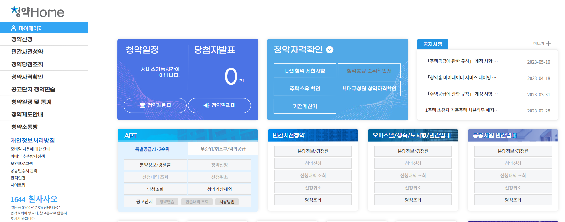 아파트뿐만 아니라 오피스텔, 생활숙박시설과 민간임대, 공공지원민간임대 등의 청약정보를 제공받을 수 있어 청약에 관심이 있으신 분이라면 청약홈 홈페이지를 꼭 이용해 보세요.